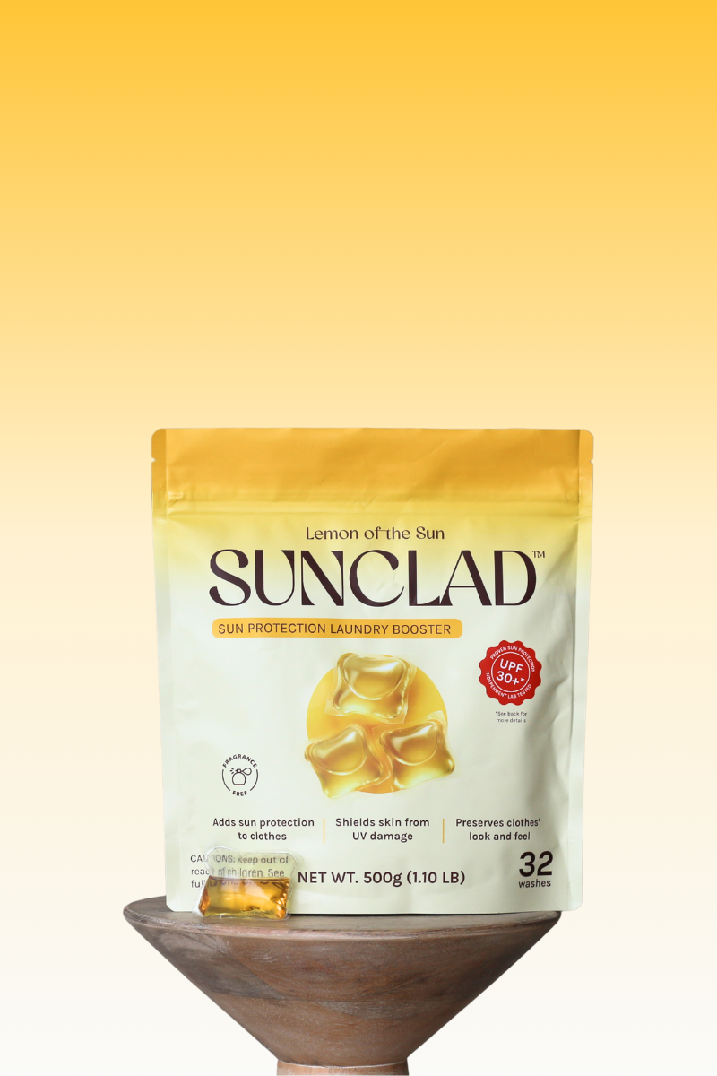 SunClad is formulated with a UV-absorbing filter that bonds best to natural fiber fabrics during the wash. This creates an invisible shield that absorbs UV rays before they reach your skin so you can stay protected all day long!
